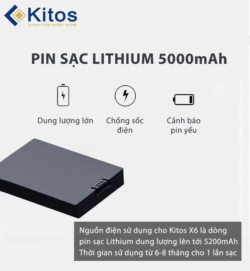 Khóa cửa thông minh có camera Kitos KT-X6 là dòng khoá cửa kéo đẩy Push Pull mới nhất của Kitos. Kitos X6 sở hữu 5 tính năng mở khoá hiện đại: vân tay, mã số, thẻ từ, chìa cơ, App.