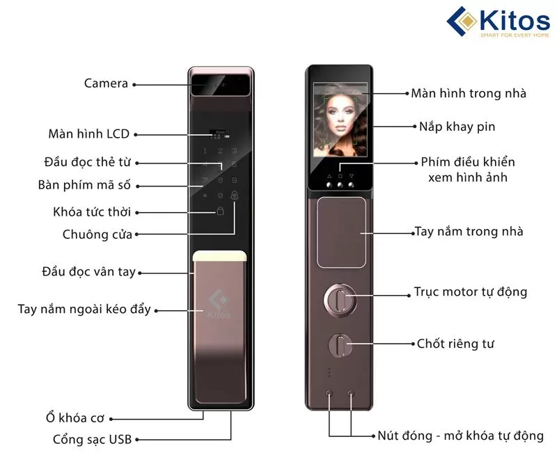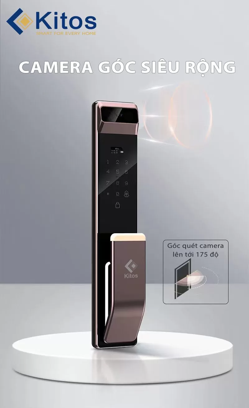 1. Tích hợp camera: Với camera tích hợp, khóa cửa KITOS X6 cho phép bạn giám sát vùng cửa từ xa và kiểm tra những ai đang ở ngoài cửa mà không cần phải mở cửa. Điều này mang lại sự an toàn và tiện ích cho gia đình của bạn.